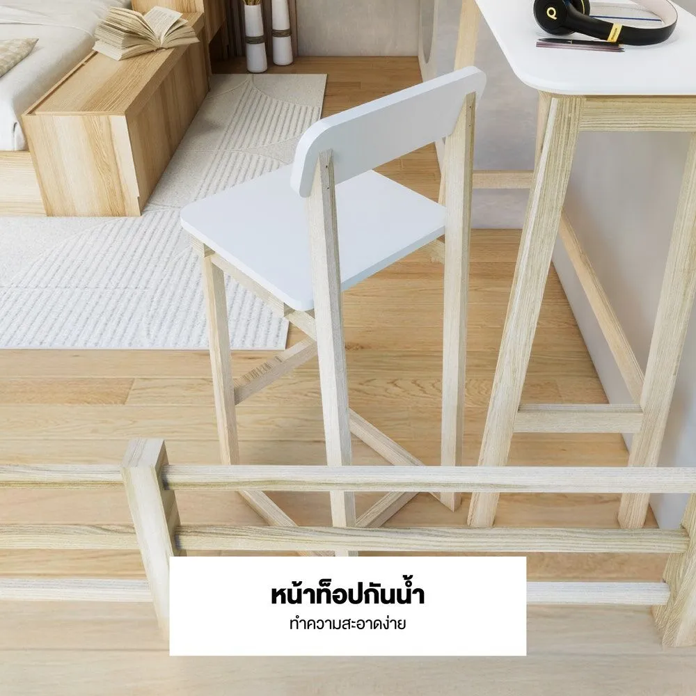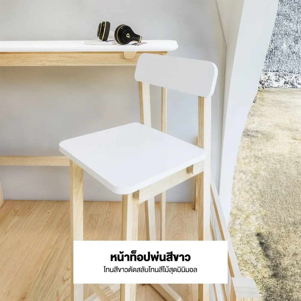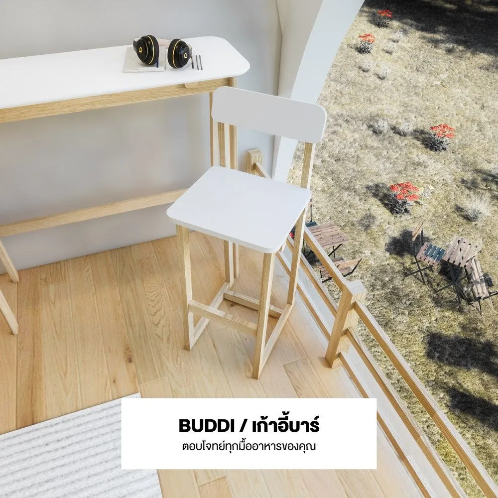 เก้าอี้บาร์ KC-PLAY รุ่น BUDDI สีขาว-ลินเบิร์ก เก้าอี้สตูลบาร์สวยเรียบสไตล์มินิมอล โครงสร้างแข็งแรง ขาไม้ยางทำสี ท็อปโต๊ะพ่นสีขาวทันสมัย กันน้ำทำความสะอาดง่าย รับน้ำหนักได้ไม่เกิน 120 กก. ขนาดความสูงจากพื้นถึงที่นั่ง 74 cm. **สินค้ารายการนี้ ไม่รวมโต๊ะบาร์** ***สินค้าต้องประกอบเองก่อนการใช้งาน ประกอบและติดตั้งง่าย โดยสแกนคู่มือประกอบรูปแบบ QR CODE ที่ Label ข้างกล่องสินค้า***