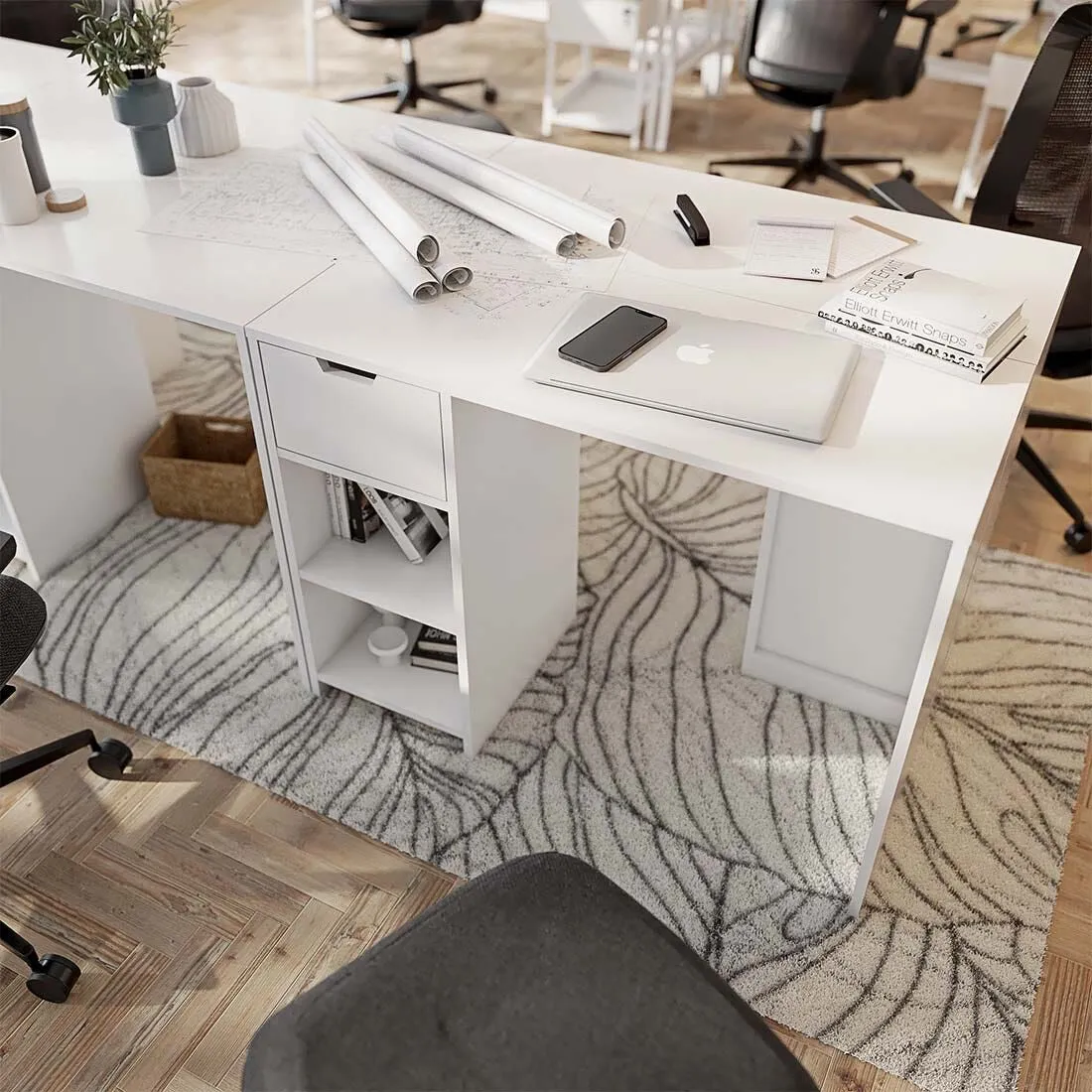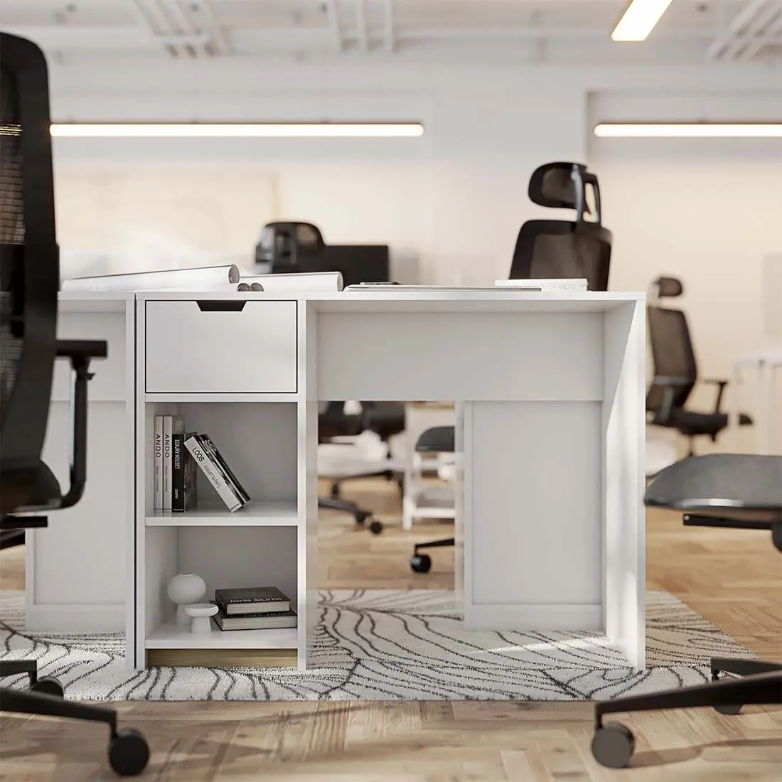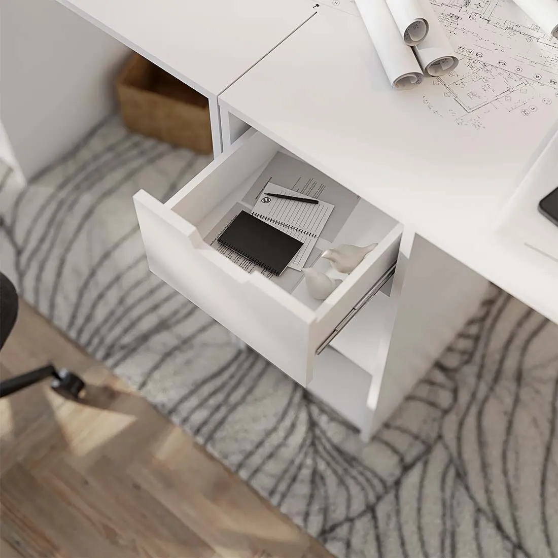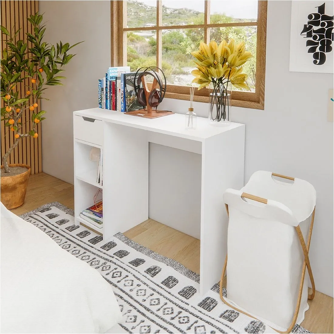 โต๊ะทำงาน KC-PLAY รุ่น WHITIE สีขาว-ลินเบิร์ก สร้างสรรค์งานในบ้านสำหรับคนรุ่นใหม่ โต๊ะทำงานสีขาว สไตล์มินิมอล 1 ลิ้นชัก และช่องโล่งเก็บของ 2 ชั้น ขนาดเล็ก ฟังก์ชั่นเยอะ เหมาะกับการวางในห้องคอนโด ***สินค้าต้องประกอบเองก่อนใช้งาน สแกนคู่มือประกอบสินค้ารูปแบบ QR Code ได้ที่ข้างกล่อง (หมายเหตุ ราคาสินค้าไม่รวมค่าประกอบและจัดส่ง)***