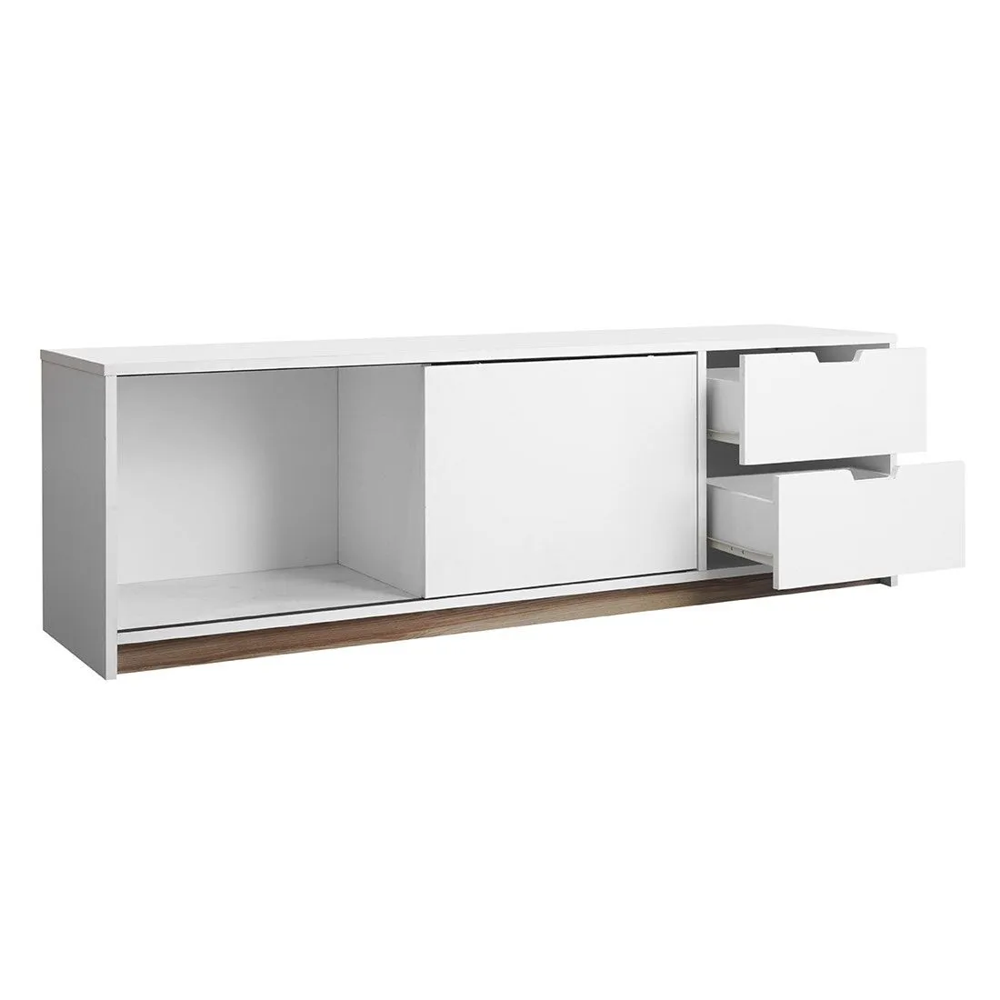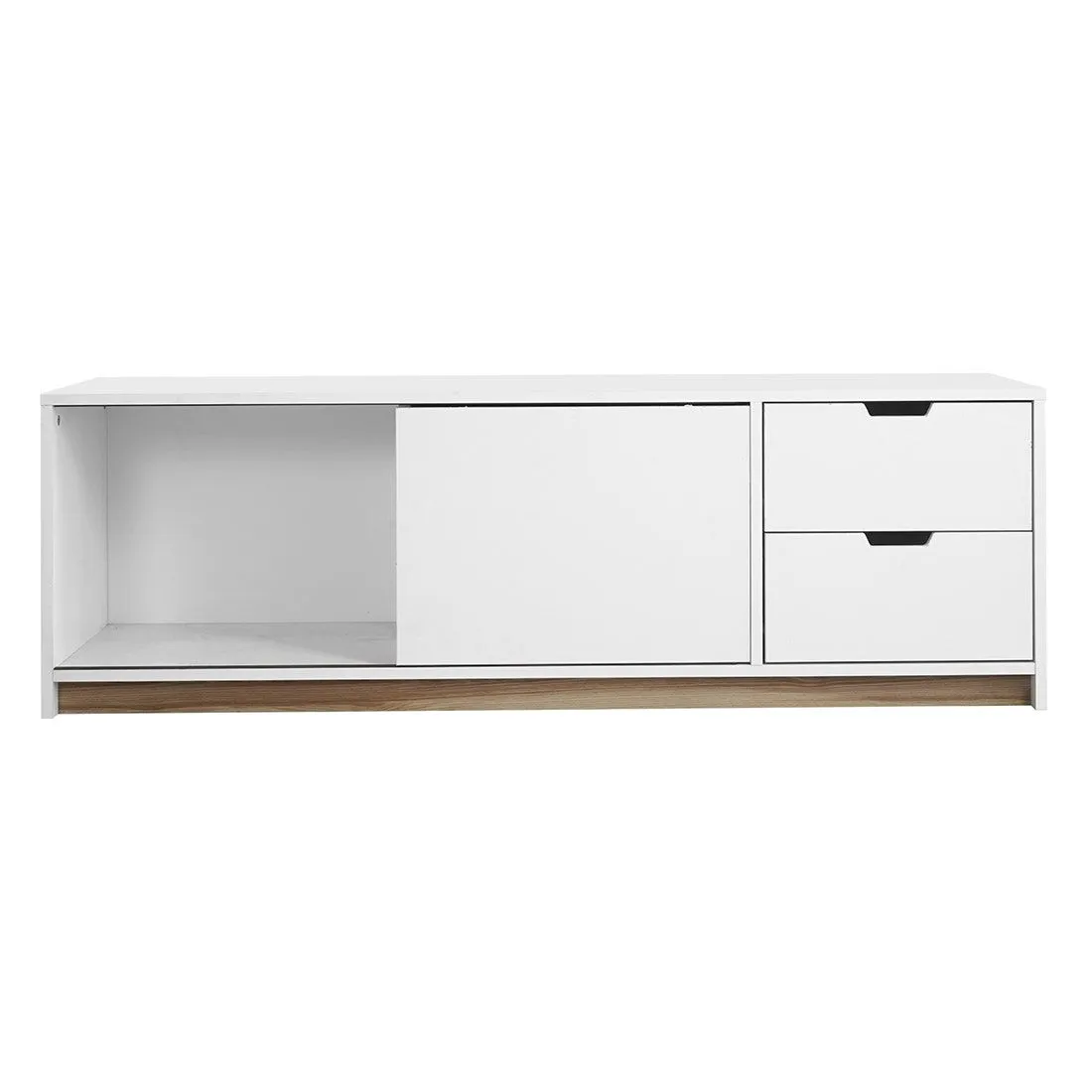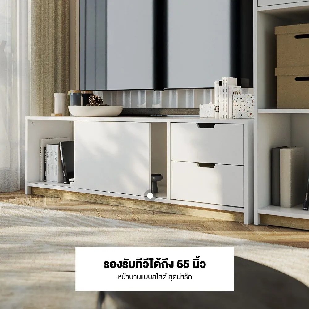 ไซด์บอร์ด KC-PLAY รุ่น WHITIE โทนสีขาวสไตล์มินิมอล พร้อมลิ้นชัก 2 ชุด รับน้ำหนักได้ 5 กก. ต่อชุด ช่องเก็บของอเนกประสงค์ รับน้ำหนักได้ 10 กก. หน้าโต๊ะรับน้ำหนักได้ 20 กก. รองรับทีวีได้ 55 นิ้ว