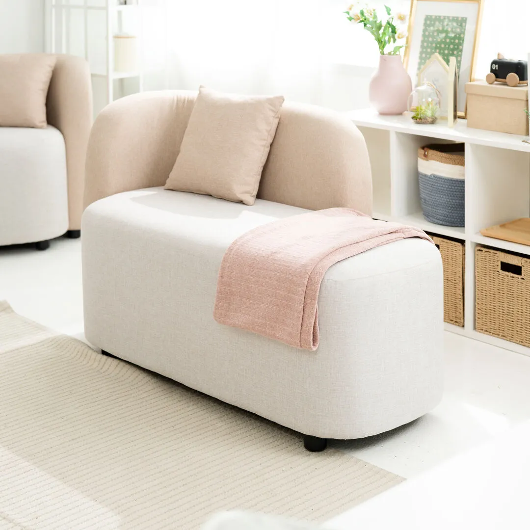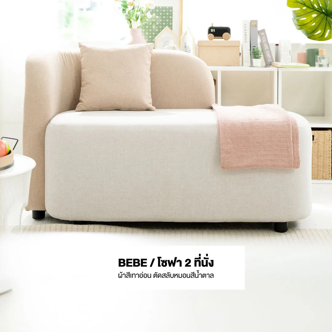 โซฟา 2 ที่นั่ง KC-PLAY รุ่น BEBE สีเทาอ่อน+หมอนอิงน้ำตาล หุ้มด้วยผ้าคุณภาพดี นั่งนุ่มสบาย แข็งแรงทนทาน ดีไซน์เรียบง่าย น่ารักแบบมินิมอล พร้อมหมอนอิง 1 ใบ