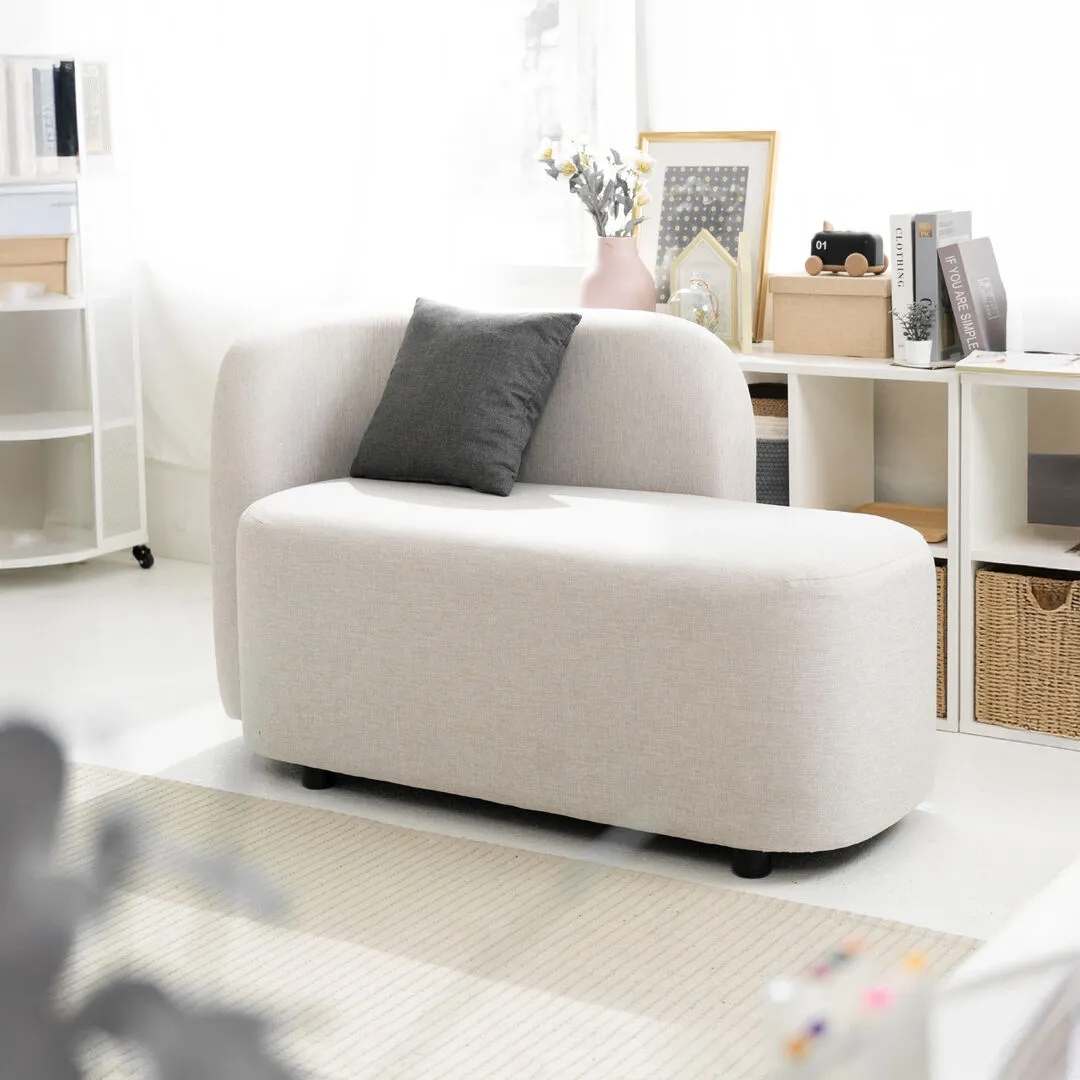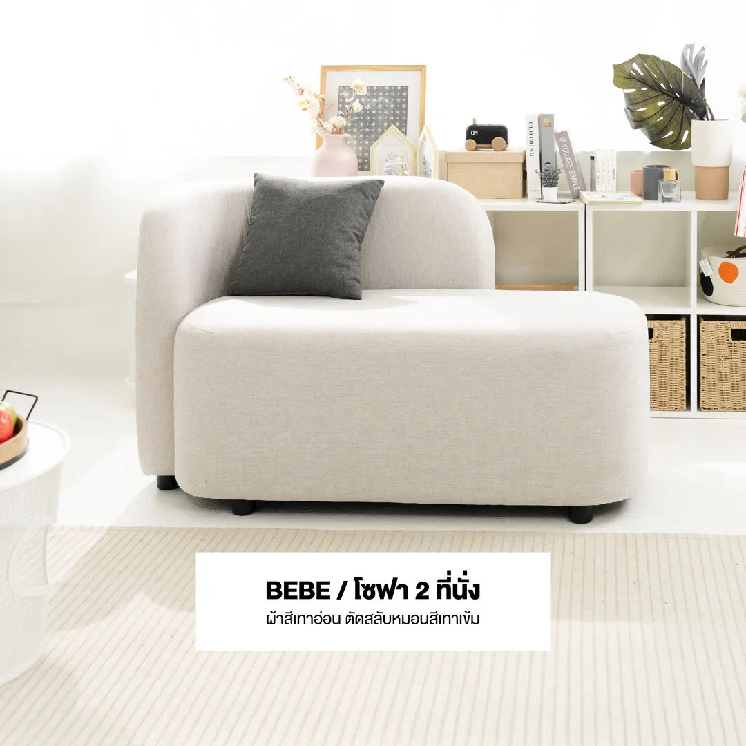 โซฟา 2 ที่นั่ง KC-PLAY รุ่น BEBE สีเทาอ่อน+หมอนอิงเทาเข้ม หุ้มด้วยผ้าคุณภาพดี นั่งนุ่มสบาย แข็งแรงทนทาน ดีไซน์เรียบง่าย น่ารักแบบมินิมอล พร้อมหมอนอิง 1 ใบ