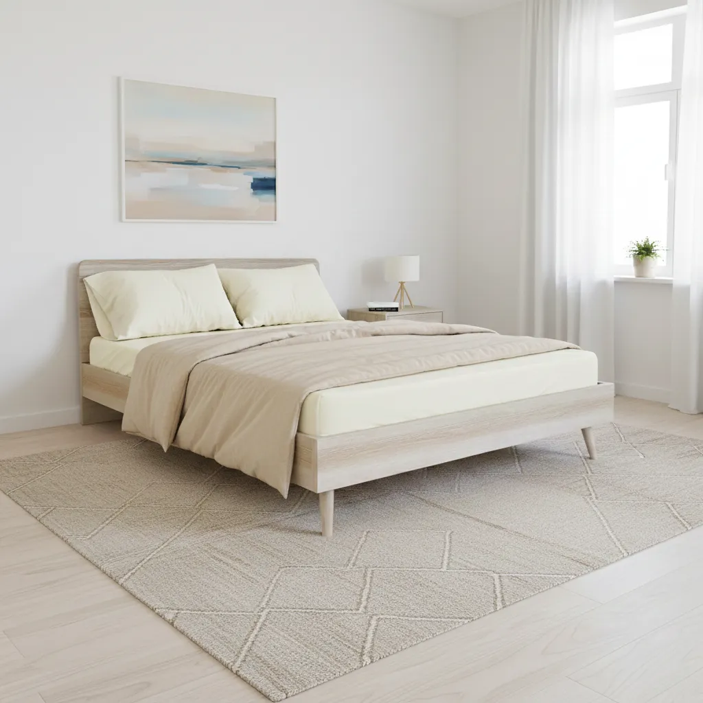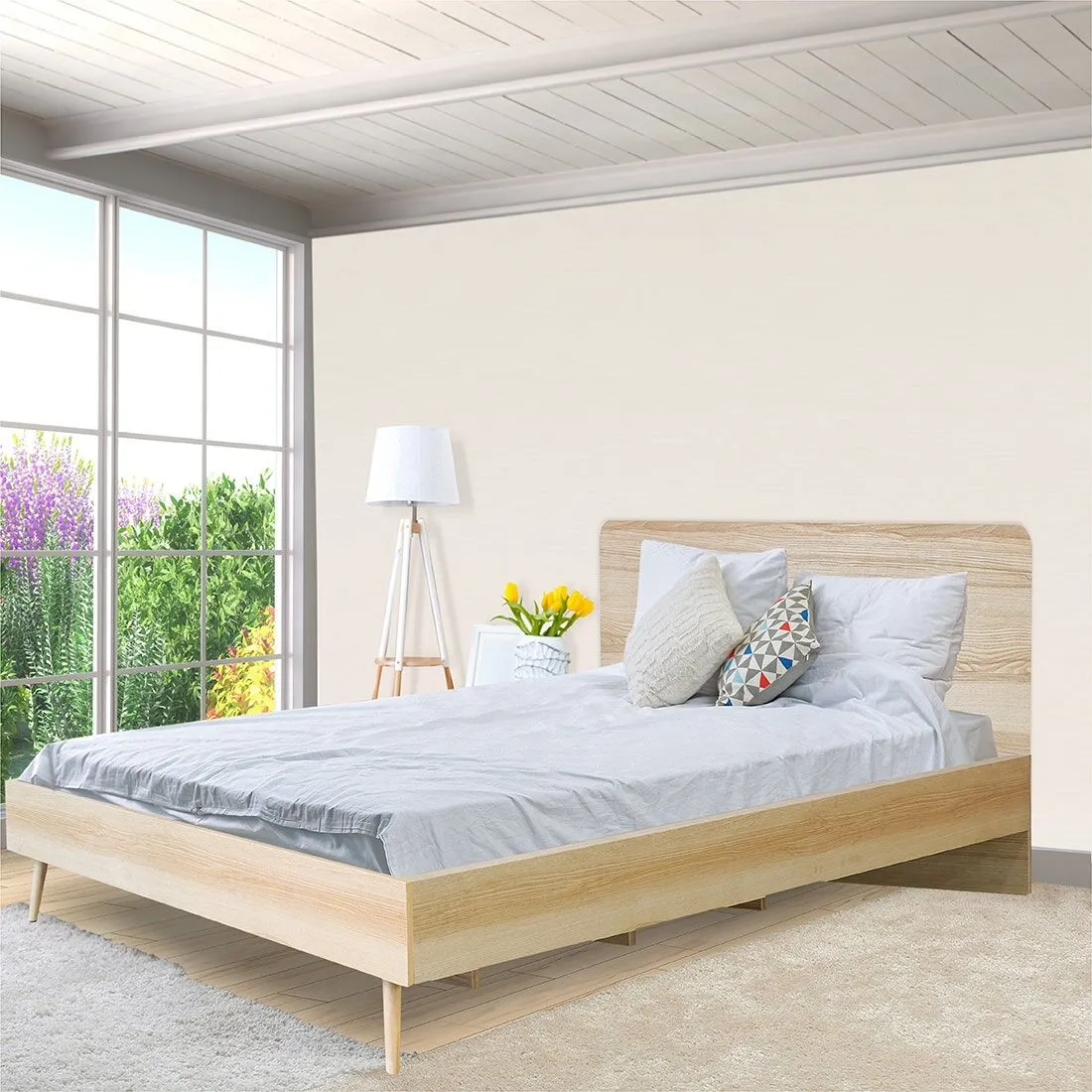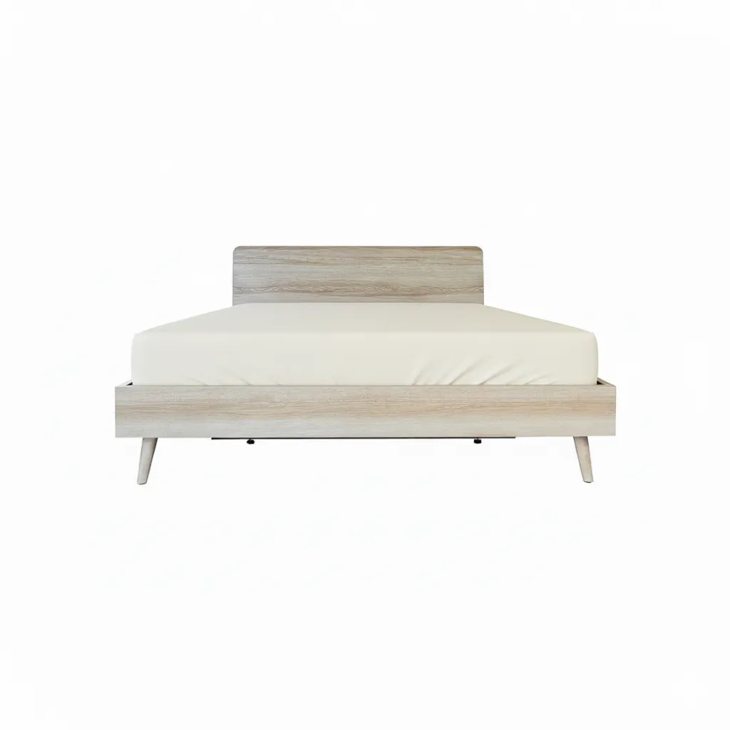 เตียง 5 ฟุต KC-PLAY รุ่น PLAYEAH สีลินเบิร์ก ฐานเตียงพร้อมหัวเตียงไม้ชนผนังแบบเอียงเล็กน้อย เพื่อรับกับแผ่นหลัง เรียบง่ายสไตล์สแกนดิเนเวี่ยน คานเตียงไม้ รับน้ำหนักได้ไม่เกิน 600 กก. ท้ายเตียงขาไม้ยางทำสี ความสูงจากพื้นถึงฐานเตียง 32 cm.